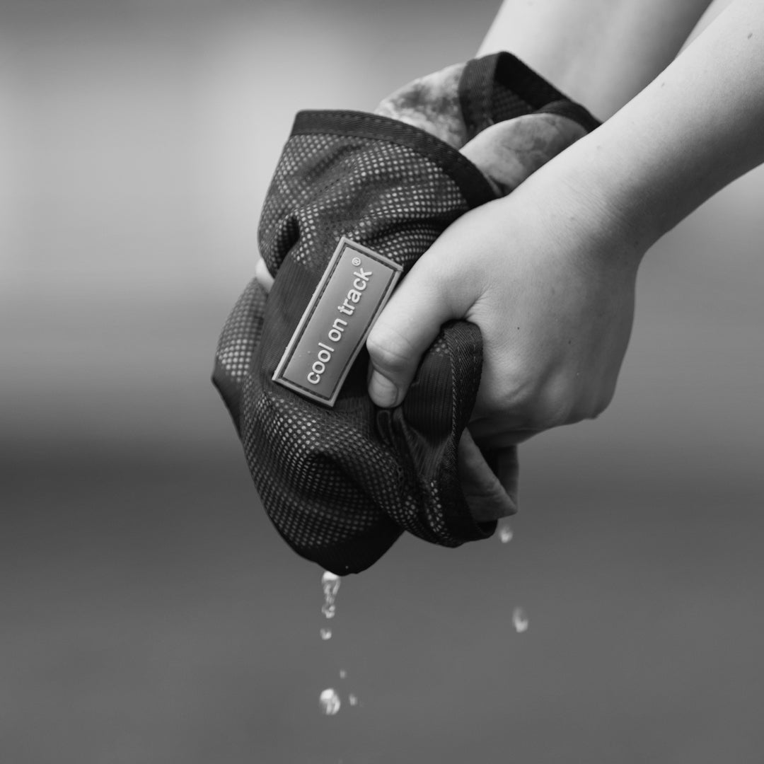 Om Cool on Track™️: Cool on Track™️ är ett tekniskt kylande material med mycket hög absorptionsförmåga, som sänker temperaturen med ca 6° C genom vattnets avdunstning. Det innehåller inga kemikalier och kräver inte tillgång till frys.