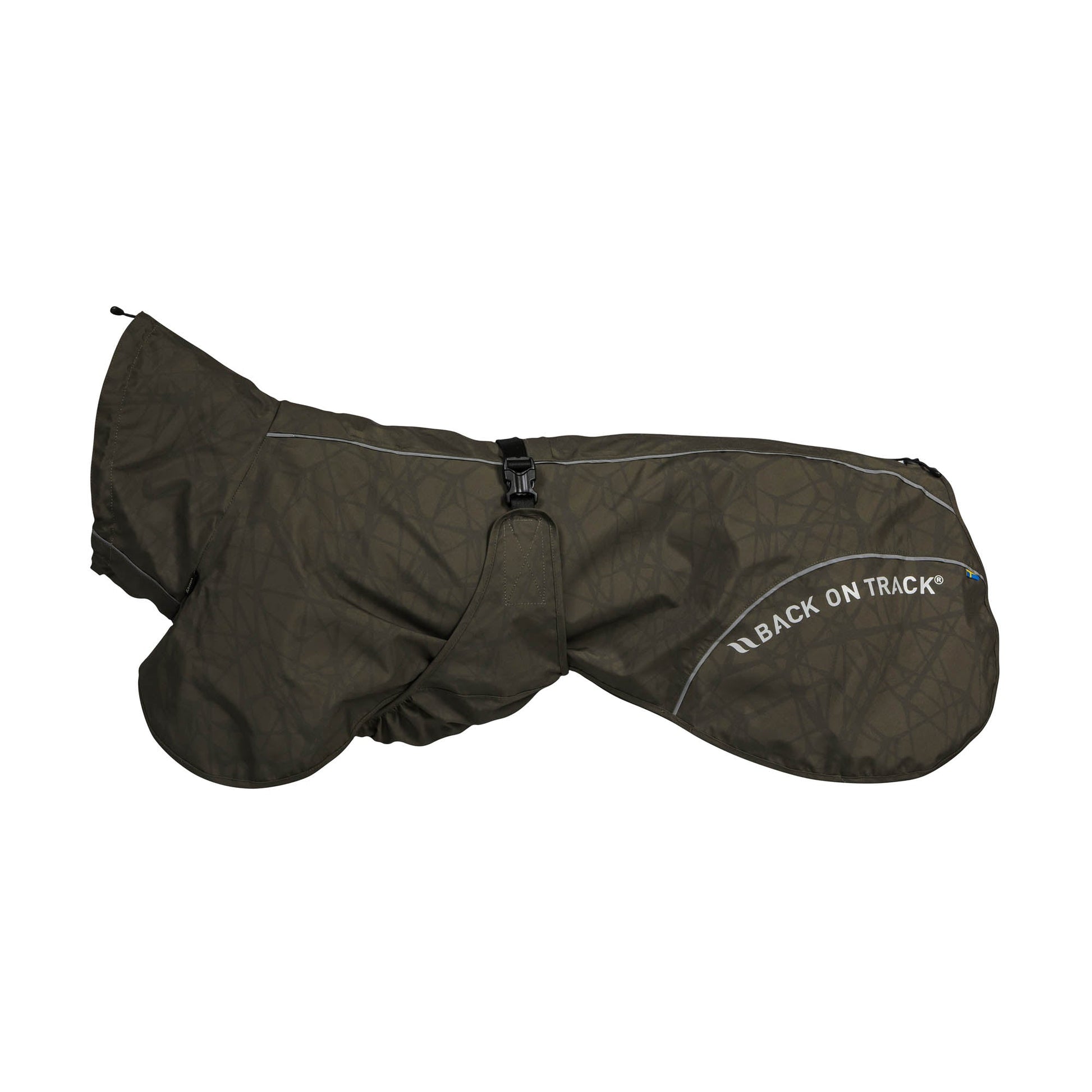BAY Regntäcke är omsorgsfullt designat för att tätt följa hundens kroppsform kring lår och bröstparti - men samtidigt tillåta maximal rörelsefrihet. Elastiska bensnören bibehåller det tunna materialets kontakt med kroppen.