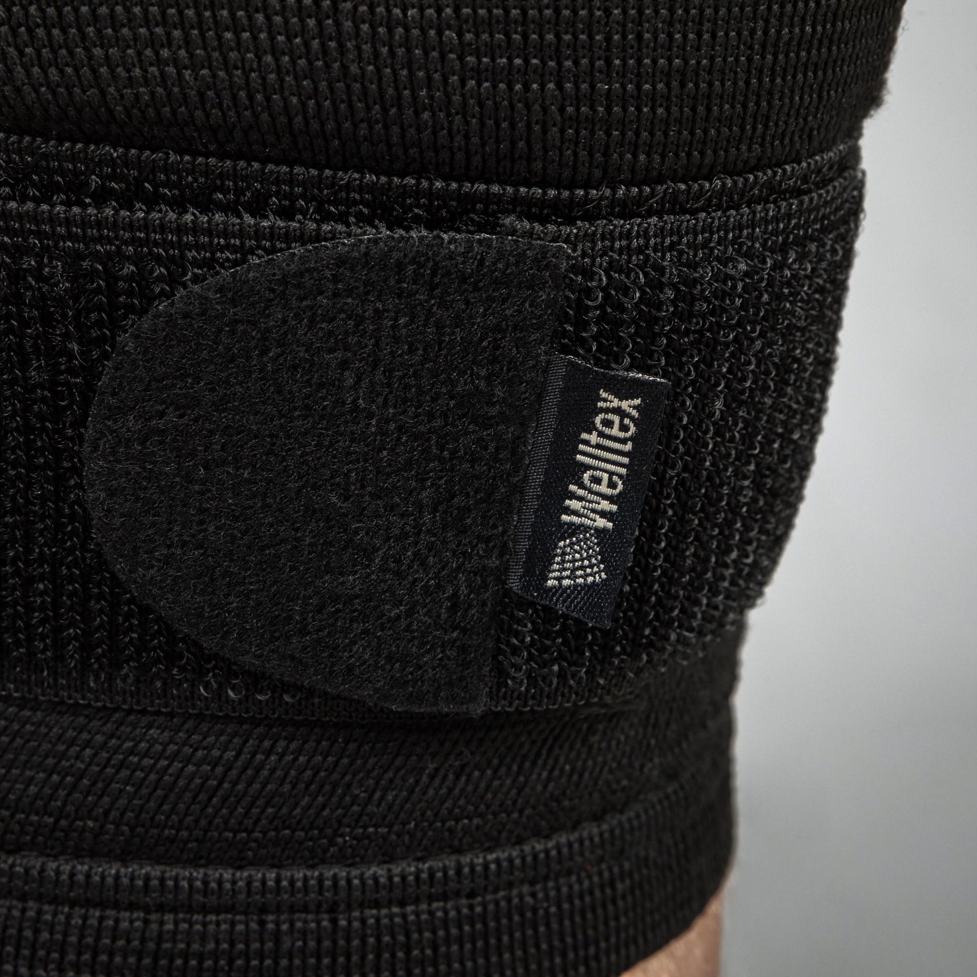 Knäskyddet är tillverkat av ett fast 2-vägs stretchmaterial som innehåller Welltex® – vår FIR-teknologi, känd för sin förmåga att stimulera cirkulationen och främja blodflödet.