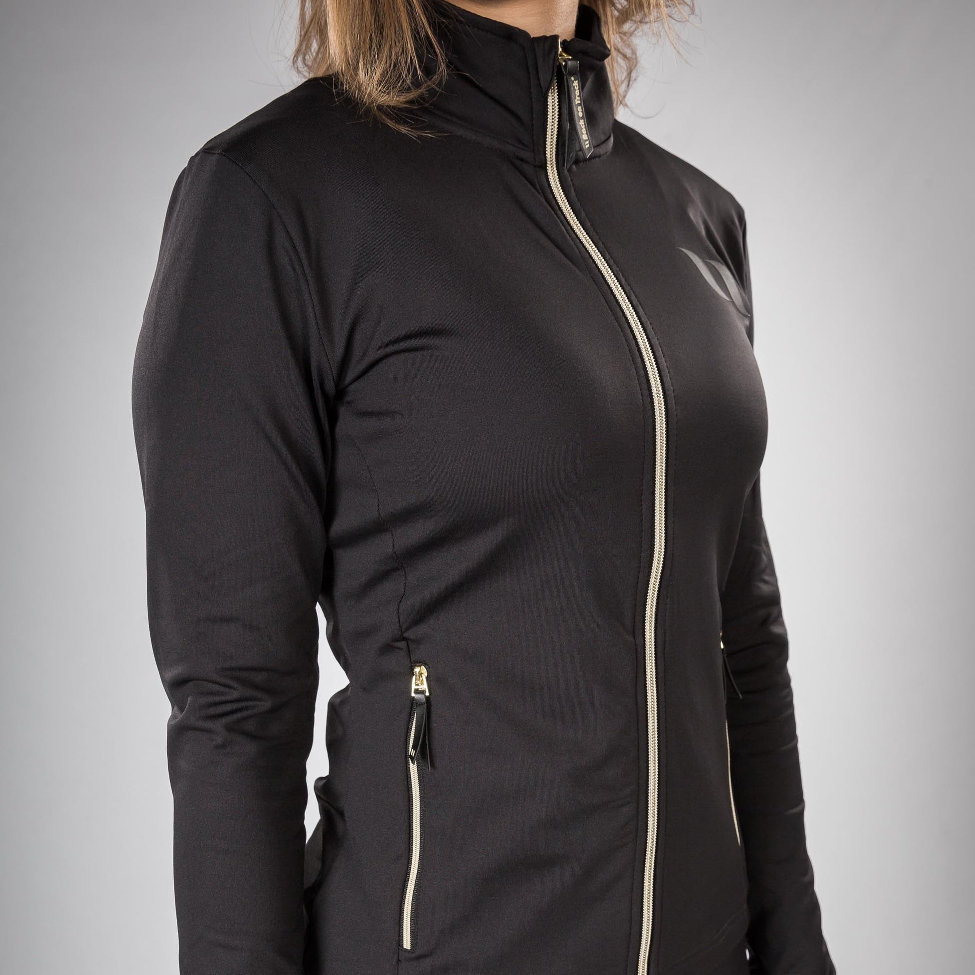 Tröjan är tillverkad i ett lättviktigt, mjukt och elastiskt material av hög kvalitet. Svart med en guldfärgad dragkedja framtill. Två fickor med guldfärgade dragkedjor på sidorna. Hög krage med nära passform för optimal effekt av Iontex®-teknologin i nackpartiet.