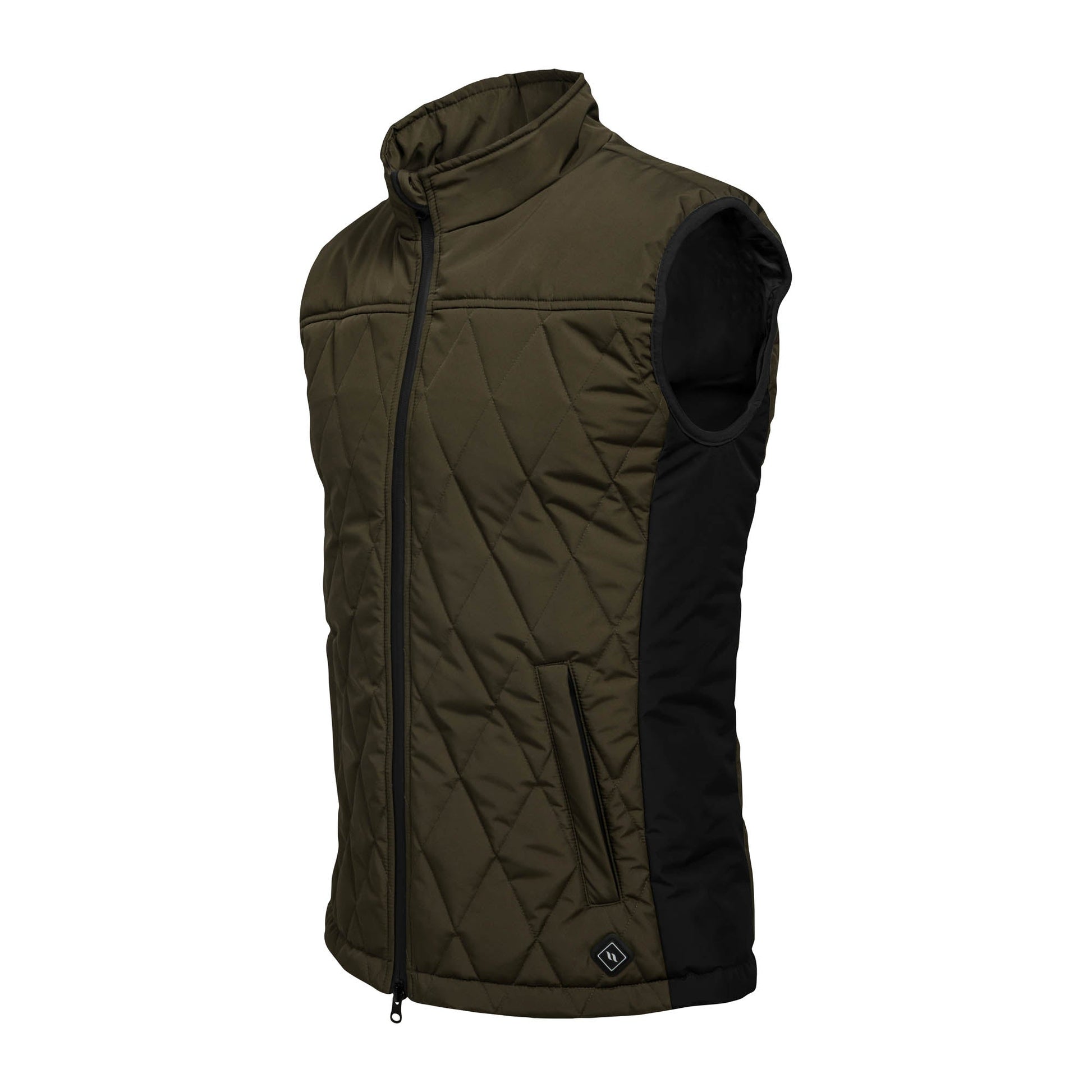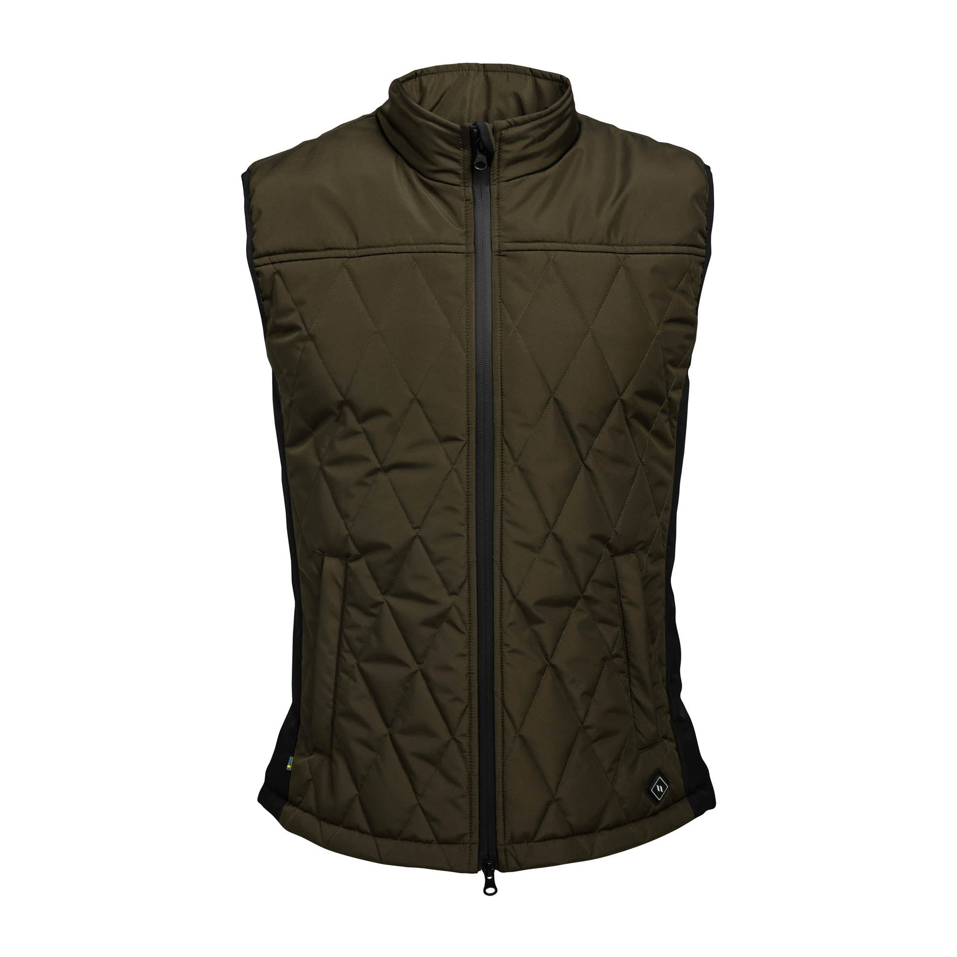 Den här quiltade västen är lätt vadderad och har ett inbyggt elektriskt värmesystem som drivs av valfri powerbank. Genom att trycka på knappen med vår logga - som sitter på plaggets framsida - aktiveras det elektriska värmesystemet som genast omfamnar kroppen med behaglig värme.